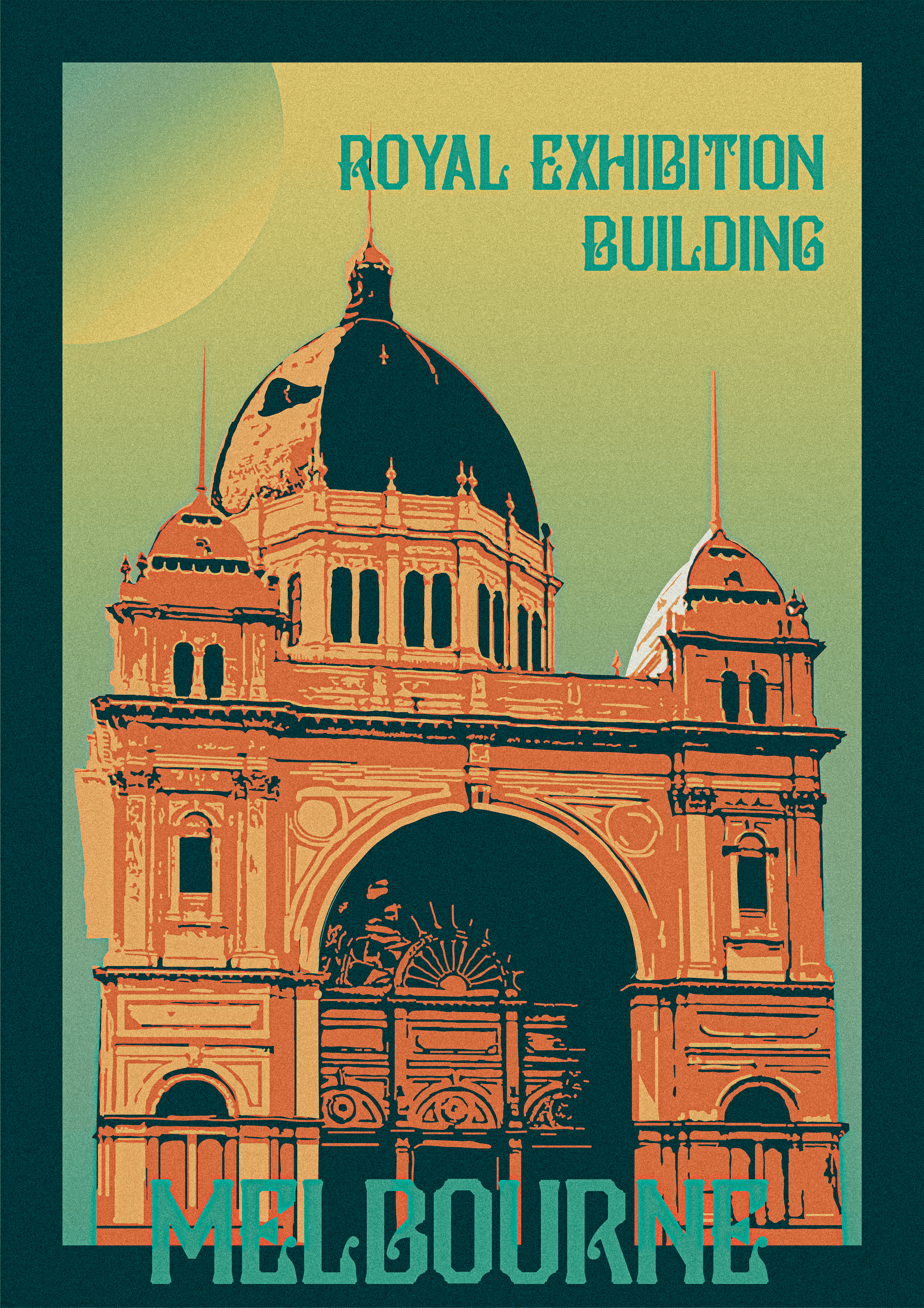 A vintage-style travel poster illustrating Melbourne’s built heritage. Inspired by early 20th-century tourism posters and designed as part of a proposal for a community art initiative.